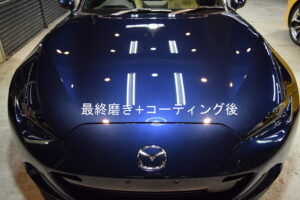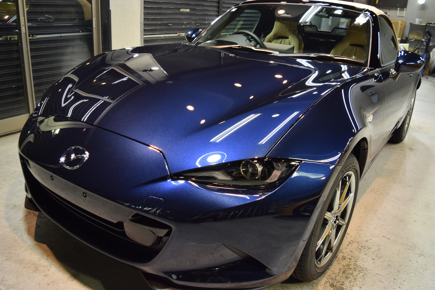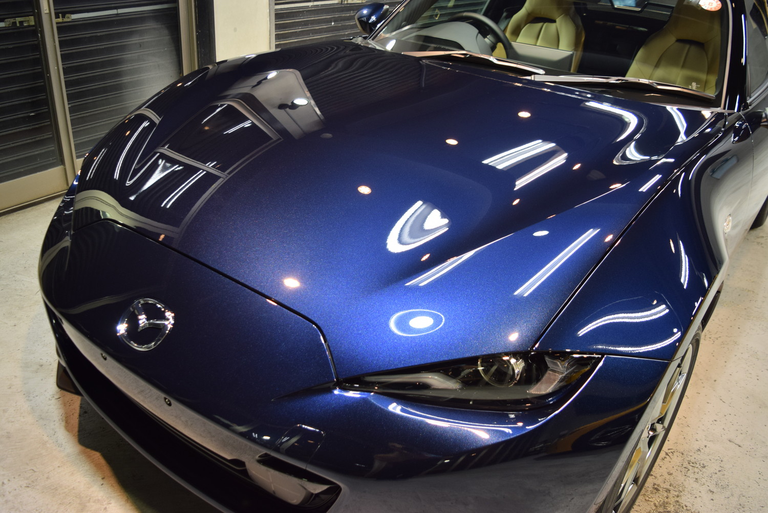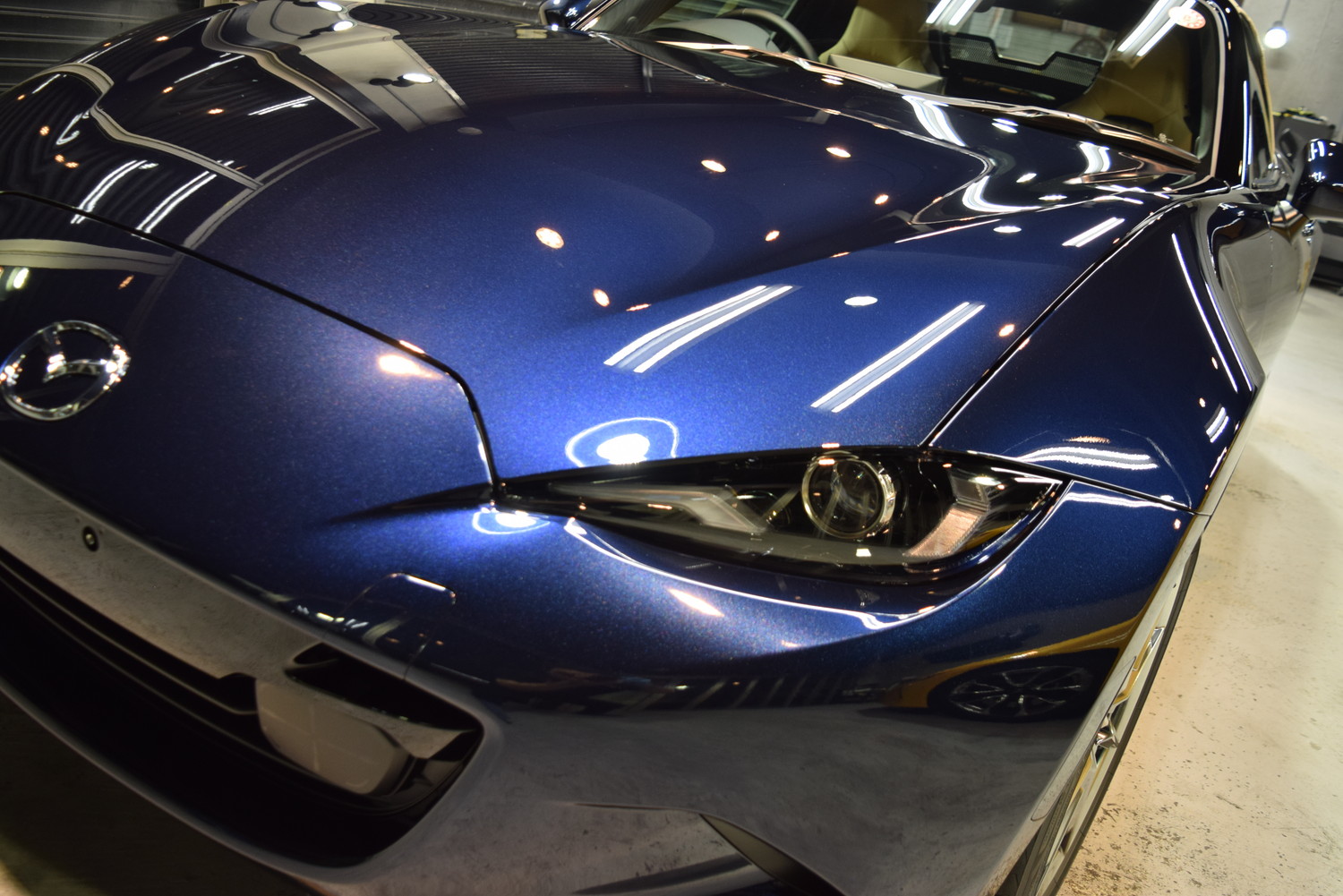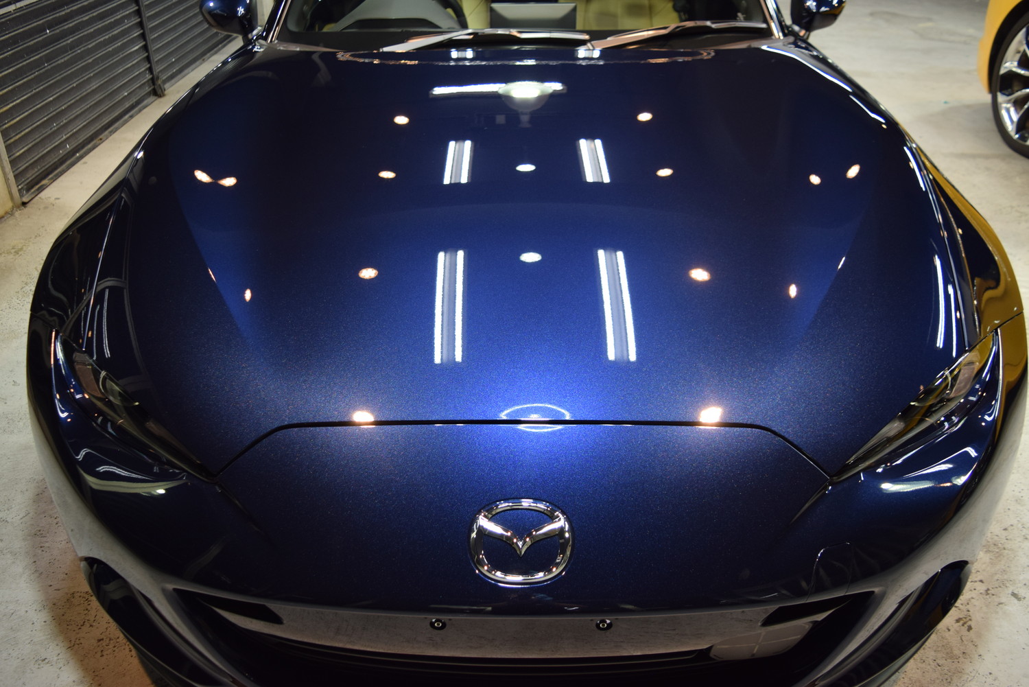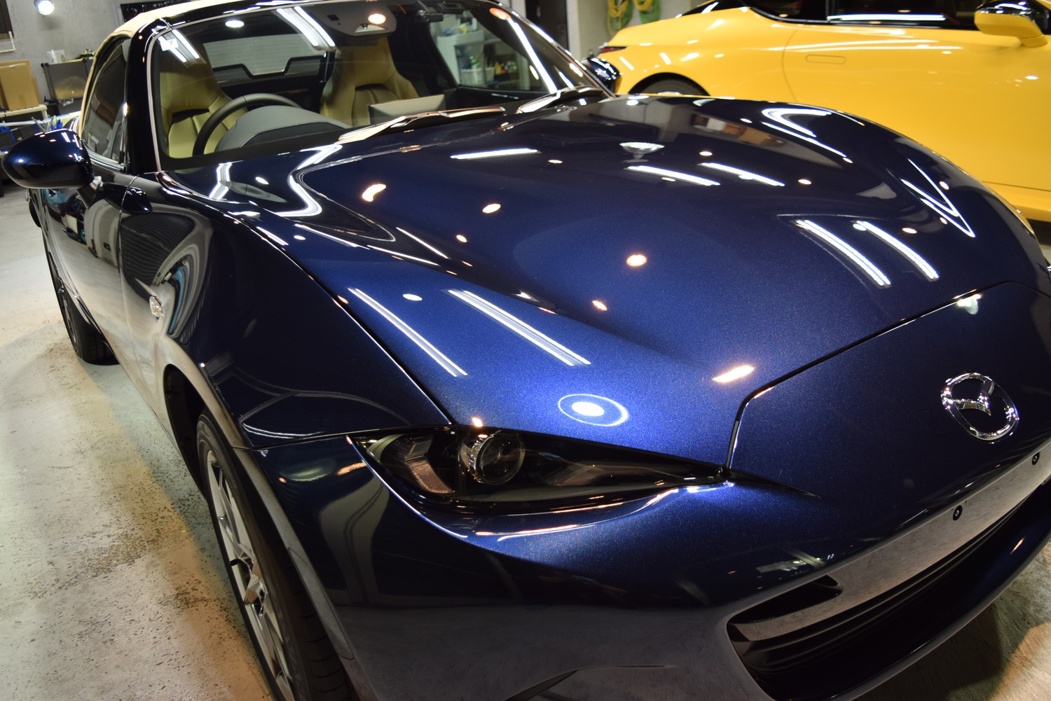 ロードスターのディープブクリスタルブルーマイカを下地処理前後
