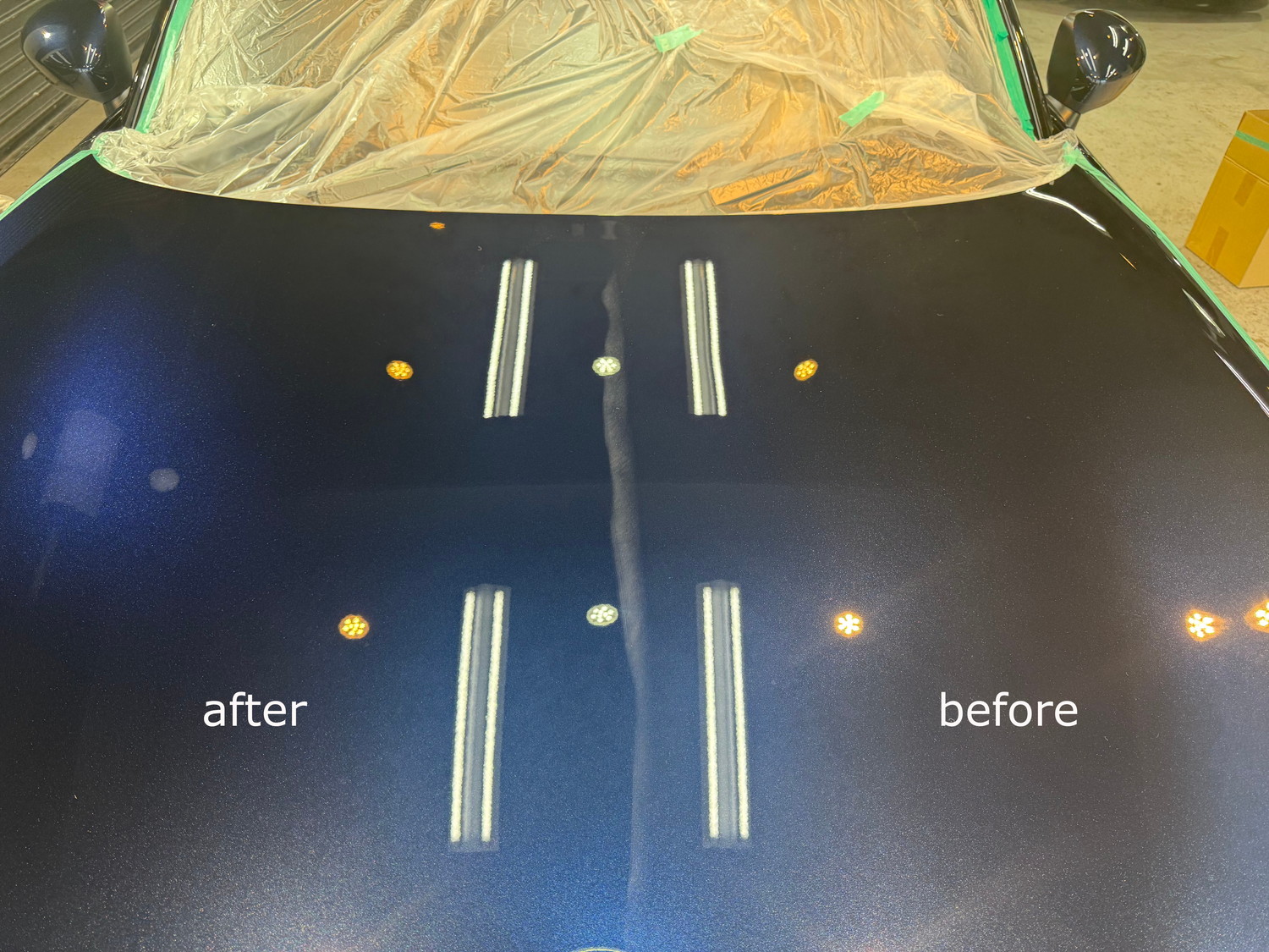 下地処理により塗装面をと整えますと白ボケ感が減り、本来の色が見えます。