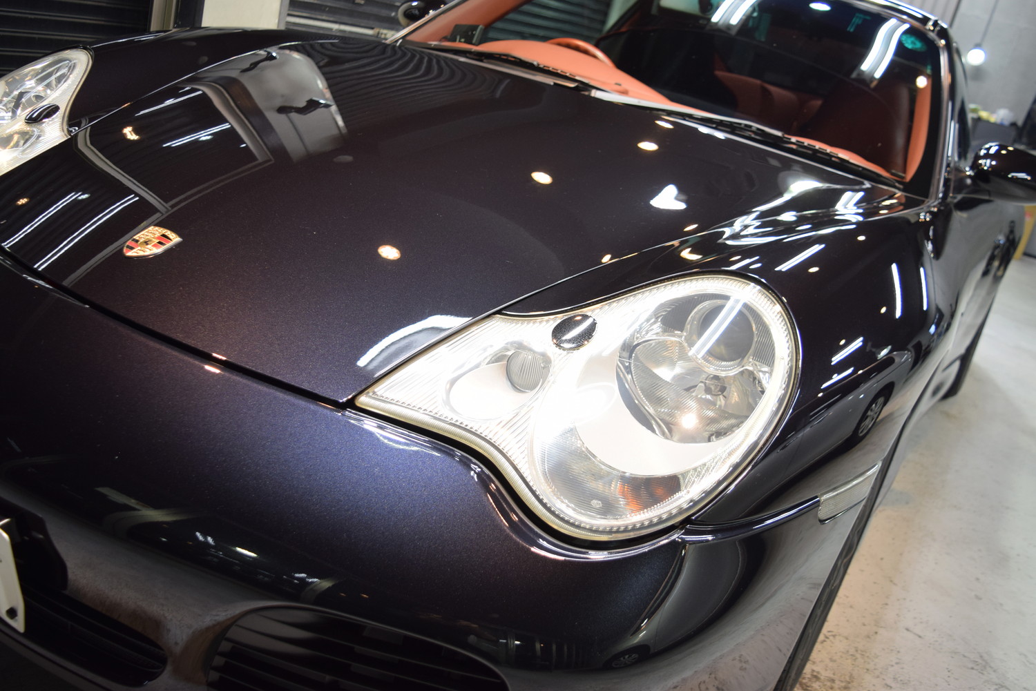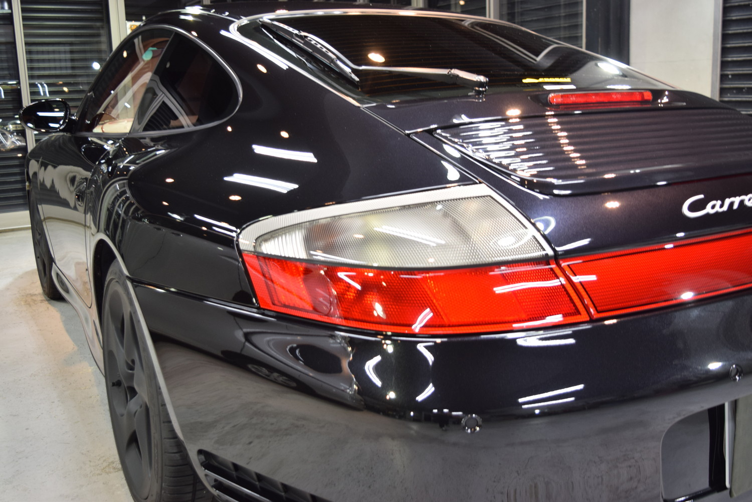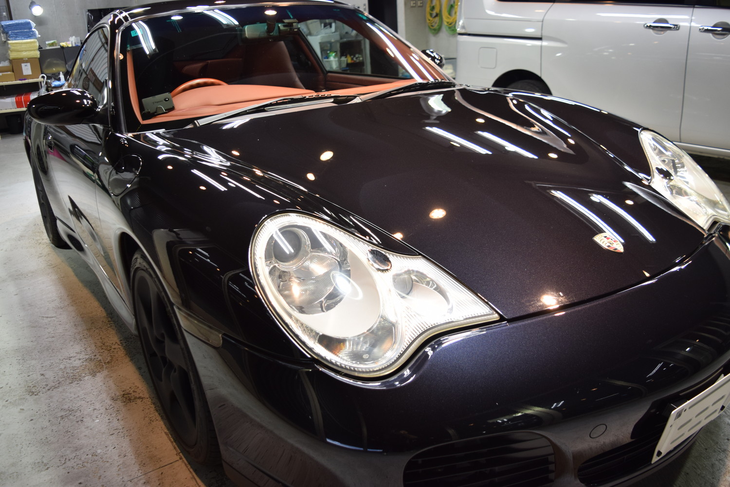 下地処理によりキズをできる限り除去後、洗車(脱脂)後コーティングを施工します。